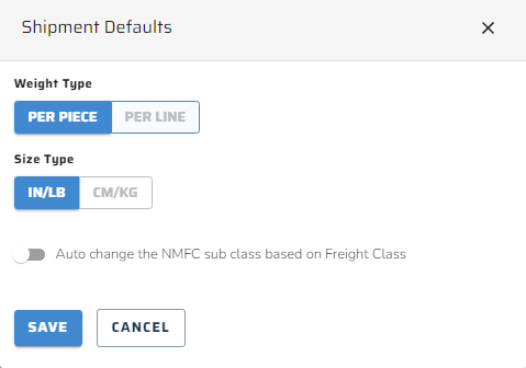 - If Auto-Change NMFC Subclass Based on Freight Class is enabled, the system updates the subclass to match Freight Class data from the NMFC catalog.