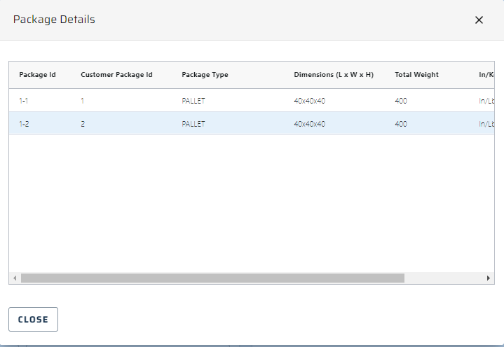 The shipment details summary is displayed at the top of the window. Users can click the arrow next to the summary to expand or collapse the package details.