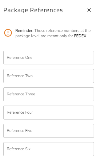 Clicking on the Package References button opens a window with six reference fields, used primarily for FedEx shipments.