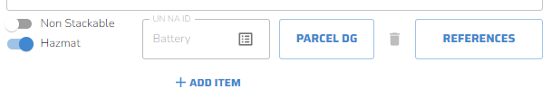 When Hazmat is toggled on, the UN NA ID and Parcel DG sections are automatically added to the shipment details window.