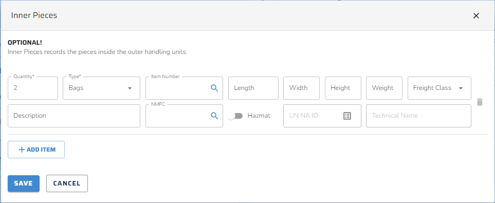 - Parcel DG: Clicking this button opens the Hazmat Details window, allowing users to verify and edit the details of the Hazmat item.