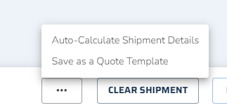 A user can save a quote as a template by clicking on the ellipsis at the bottom of the Quote/Ship page. The template will then appear on the Quote Templates window, after clicking on the button on the top of the page.