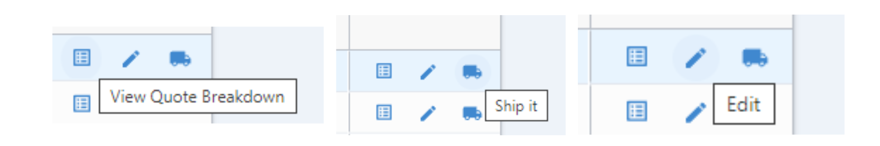 To ship a quote, the truck icon labeled Ship It can be clicked.