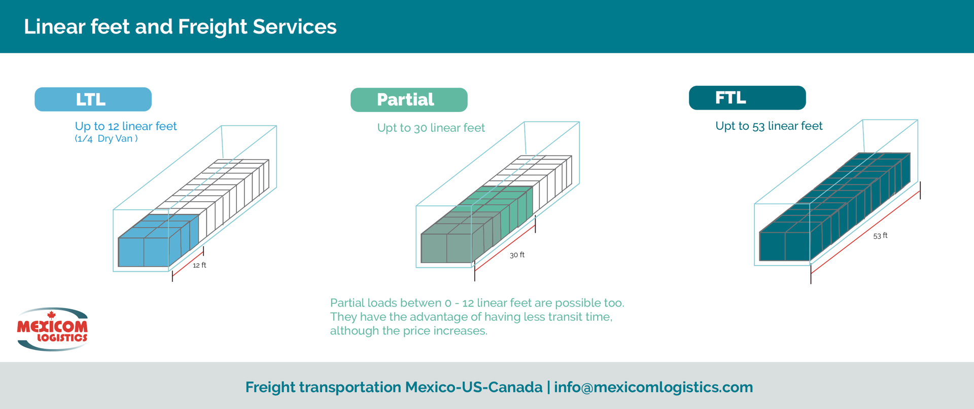 - Total Handling Units: This represents the sum of the quantity field within shipment details. If there are multiple shipment details, the quantities from all details are included in the total. Total Weight: This represents the sum of the weight field within shipment details. If there are multiple shipment details, the weights from all details are included in the total. Total Linear Feet: Linear feet measure the length of cargo as it occupies space in a trailer. The standard length of a freight truck trailer is 53 feet, with a width of 96 inches.