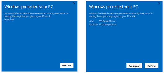 1. If you see a message stating “Windows protected your PC”, click More Info.