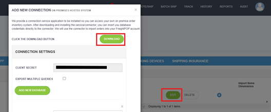 Before saving your new connection, you’ll need to install the FreightPOP Windows Service, which establishes a secure connection between FreightPOP and your local environment.